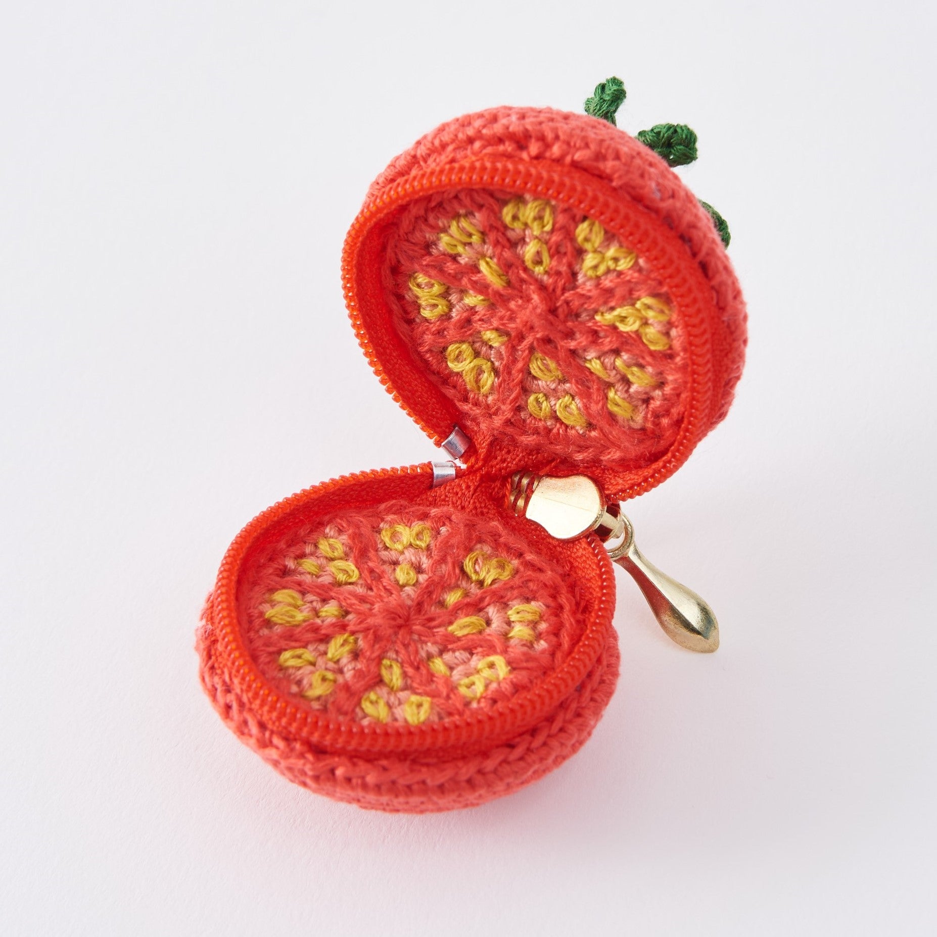 【キット内容】・刺しゅう糸 ・ファスナー ・わた ・包みボタン ・ボールチェーン ・作り方説明書 ※使用するあみ針:2/0号かぎ針